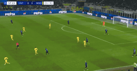 上半场比赛,国米完成了12次射门,博德闪耀只有1次。下半场踢了10分钟,国米又完成了5次射门。